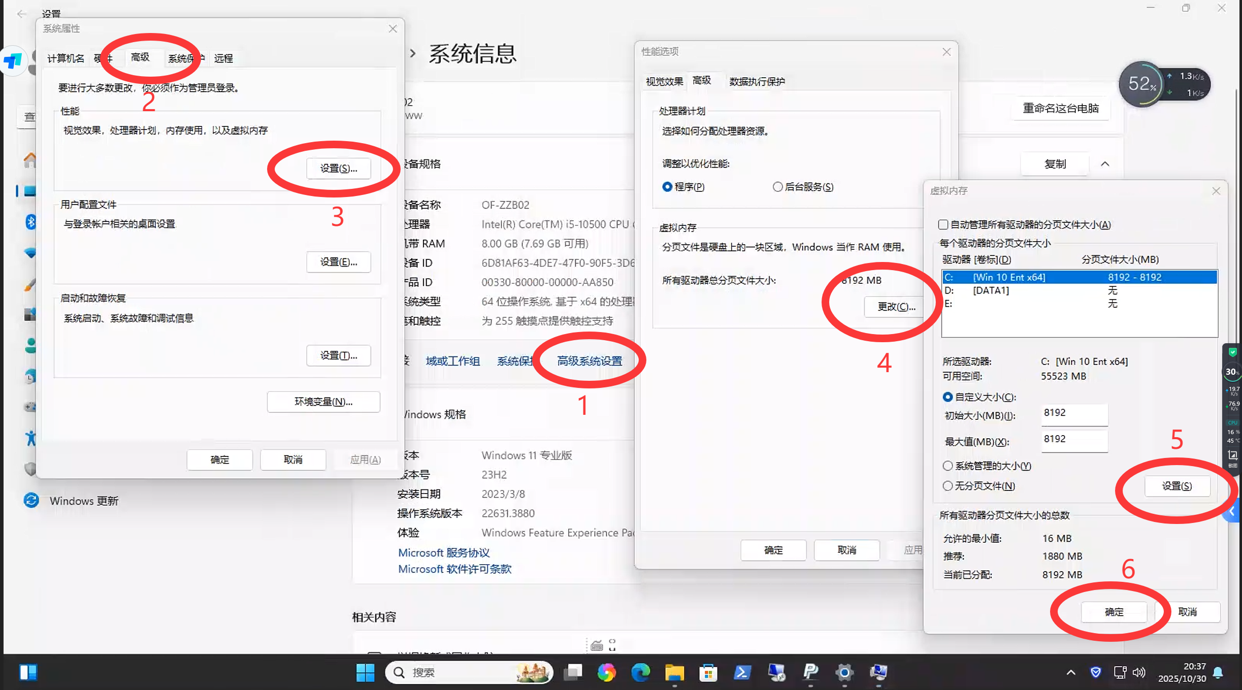C盘是固态硬盘,需要修改虚拟内存,设置8192M也就是8G的虚拟内存到固态盘,让电脑恢复流畅。
